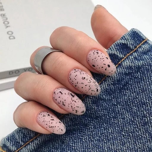 Останній варіант представлений у вигляді блискучого лаку під матовим покриттям. Варто пам’ятати, чим менше блискітки, тим красивіше буде виглядати нейл-арт.