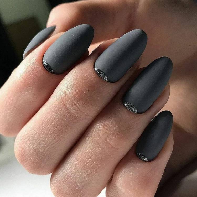 Не виходить із моди матовий дизайн із блискітками. Такий манікюр ідеально підходить для святкових заходів, але добре виглядає з повсякденним одягом. Ви можете використовувати глітер, акриловий пісок або каміфубуки. Покривати ними можна як один ніготь, так і всі одразу. Ефект буде неперевершеним.