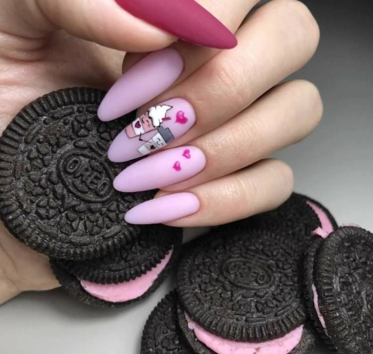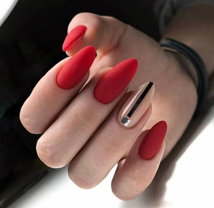 Це лідер модниць будь-якого віку. Він пристрасний, гарячий, але у матовому виконанні виглядає елегантно та лаконічно. На довгих нігтях добре виглядатиме мінімалізм. Він зробить образ стильним, а нігт привабливими. Також тут добре виглядатимуть стрази, але їх не варто додавати у великій кількості. Краще зробити акцент на одному або двох нігтиках. Ще один крутий варіант – дизайн із сердечками. Він підійде милим та ніжним дівчатам. Виглядає досить романтично і нетривіально.