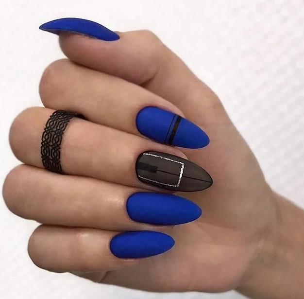 Для довгих нігтів дівчата зазвичай вибирають темні тони. Вони у поєднанні з матовим топом виглядають глибоко та екстравагантно. Взимку віддавати перевагу краще пастельним відтінкам, а влітку можна вибрати щось яскравіше. У 2022 в тренді монотехніка. Надати їй ефектного вигляду допоможе дизайн «котяче око», він додасть таємничості та шарму в образ. Також на піку популярності мармуровий водний дизайн, «космічний» манікюр та «бите скло». Всі ці варіанти у синьому кольорі неймовірно красиві.