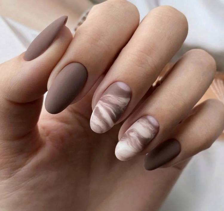 Це справжній хіт осені. Коричневий давно залишив список модних трендів. Йому на зміну прийшов цікавіший відтінок — кавовий. Він непомітний, жіночний і красивий. З таким манікюром можна вирушати як на бізнес-зустріч, так і до тренажерної зали. Найкращим доповненням до нього стануть золотисті смужки, анімалістичний принт, краплі дощу або незвичайний малюнок із чашкою кави.