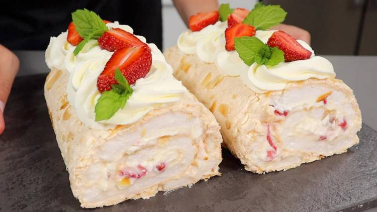Сьогодні готуватимемо меренговий рулет. Меренговий рулет – це сама ніжність, із смачним вершковим кремом, з ягодами, такий легкий, повітряний, готується швидко.