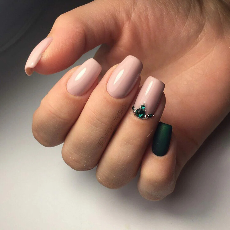 Дуже добре виглядає в матовому або глянсовому виконанні. Глянсове покриття допоможе приховати всі недоліки і нерівності. Матове ж покриття вимагає більш ретельного виконання. Саме тому для матового манікюру потрібно дуже рівне покриття, інакше всі вади будуть видні, особливо в світлому кольорі.