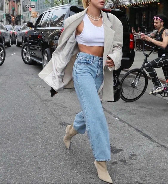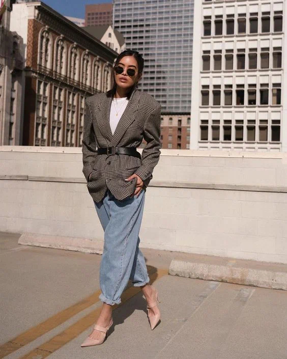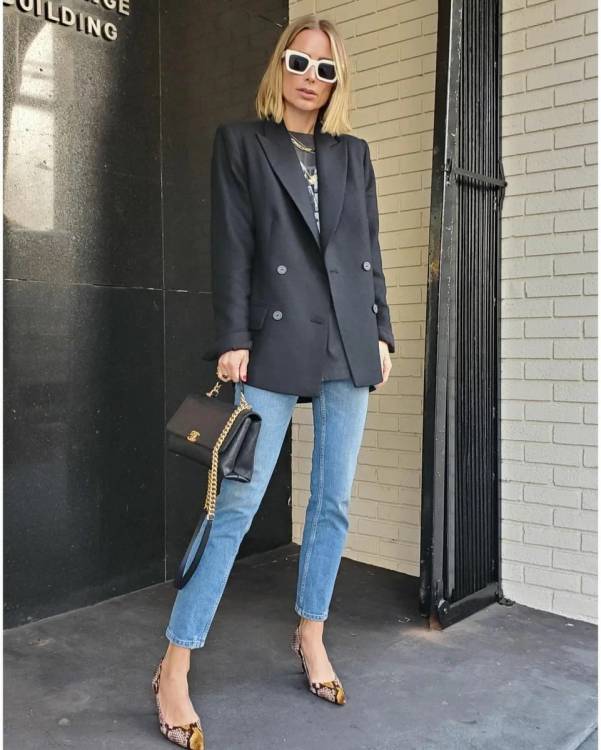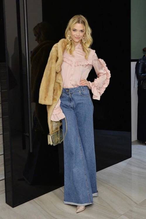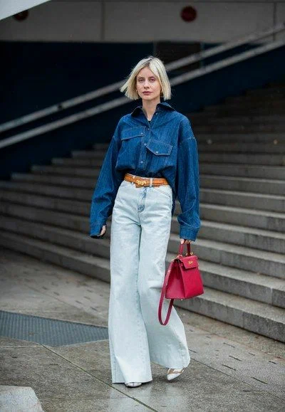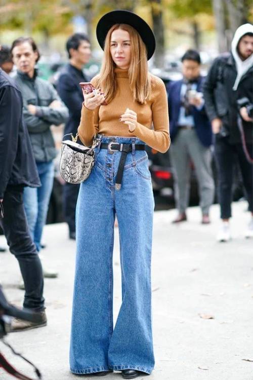 Ще один вірний спосіб здаватися стрункішою – це носити джинси кльош від стегна. Зверніть увагу, як шикарно подібного плану джинси виглядають з жіночними та елегантними блузами. Джинси такої моделі найкраще носити з оверсайз або приталеним верхом у заправленому вигляді.