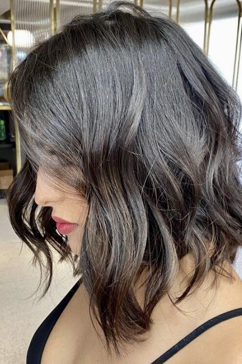 Складна техніка фарбування «балаяж» виконана в холодному попелястому кольорі стане відмінним рішенням на шляху до тотал блонду. Зверніть увагу, як ефектно незвичайні техніки фарбування виглядають не тільки на прямому, але і кучерявому від природи волоссі.