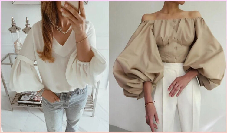 Велика кількість моделей з незвичайними рукавами вражає уяву. Особливим попитом будуть користуватися блузки з об’ємними рукавами: розкльошені, ліхтарик, дзвін і інші. Такі блузки будуть надавати образу жіночність і елегантністю, особливо в поєднанні з модним декором у вигляді стрічок, бантів, високих манжет. Рукава відрізняються довжиною, пишністю, розташуванням ліхтарика на рукаві. Ефектно виглядають об’ємні рукави з сіточки. Блузки з шифону пастельних відтінків доповнять офісний, повсякденний та вечірній лук.