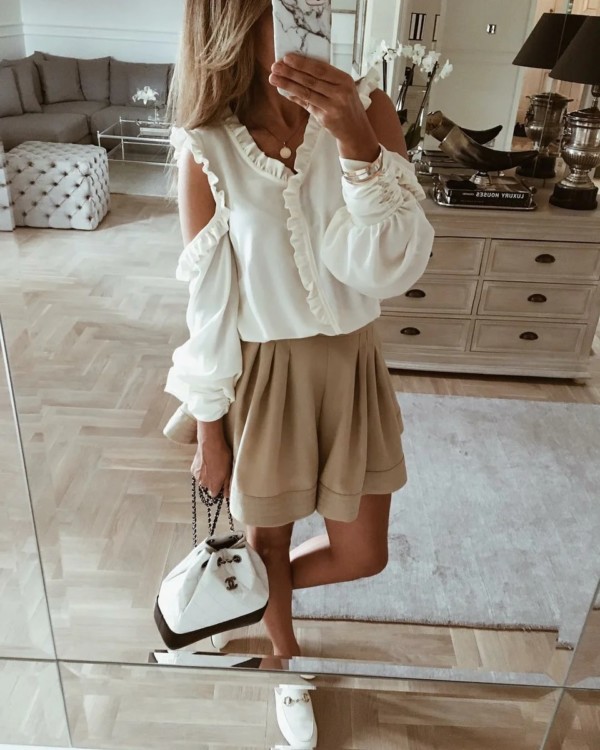 На весну і літо можна вибрати блузки без рукавів або з прозорими елементами. Залежно від погоди вибирають верх образу. В якості альтернативи завжди можна вибрати зручний жакет, який підійде і для теплого літа і прохолодну весну.