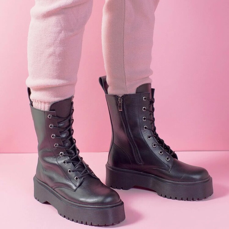 Грубі черевики з тракторною підошвою, шнурівкою – ідеальне рішення для зухвалих леді, які люблять створювати нестандартні образи. Черевики, які чимось нагадують берци, чудово виглядають як в парі з джинсами, так і з лосинами, спідницями або сукнями.
