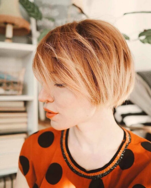 Подовжений чубчик, підстрижений навскоси, виглядає дуже стильно і ефектно. Підходить власницям прямого довгого волосся або навпаки – ультракороткої стрижки типу пікс, боб-каре та інших подібних варіантів. Ідеально поєднуються з градуйованими стрижками з рваними кінцями.