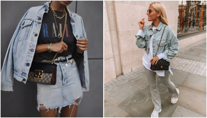 Також джинсова куртка доречно виглядає з однотонними або ж принтованними брюками, футболками та об’ємними в’язаними светрами. Мюлі або витончені босоніжки на підборах підійдуть до будь-якого з цих сетів.