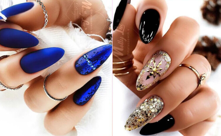 Королівський колір завжди був модний, але в поточному році став хітом нейл-арту. Благородні відтінки холодного кольору немов створені для зимового манікюру. Особливо ефектний відтінок синього кольору під назвою електрик. На такому покритті розкішно виглядають тематичні зимові малюнки і багатий вечірній декор.