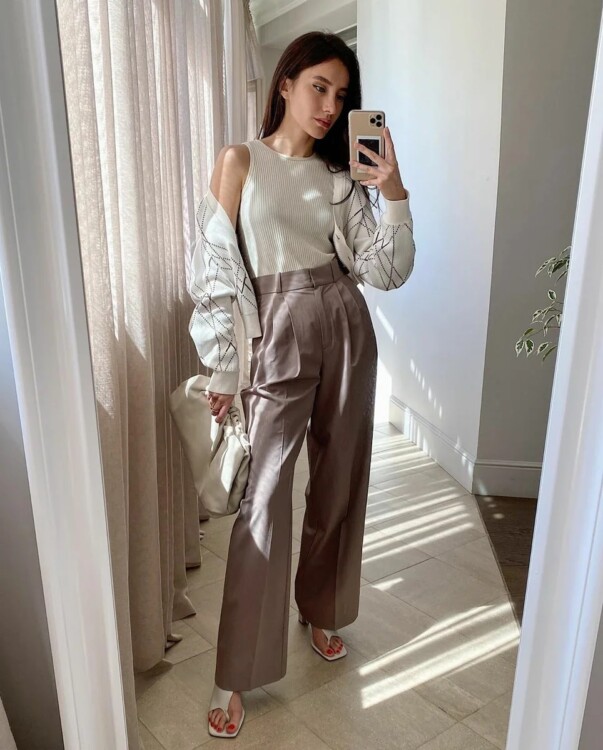 - Цей стриманий стиль прекрасно підійде не тільки для повсякденних прогулянок по місту і походу на захід, але також ідеально підійде і для строгого офісного дрес коду.