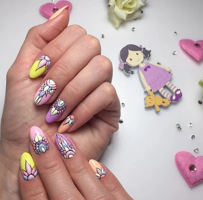 Влітку в моді тематичні малюнки та помітні гель-лаки. Можна намалювати пальми, морські зірки, черепашки, хвилі. Особливо популярні ілюстрації з фруктами, ягодами та овочами. Дівчата люблять наносити на нігті авокадо, вишні, полуницю, малину. Виглядає чарівно.
