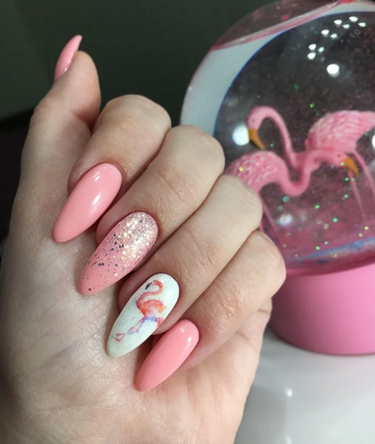 Цей птах символізує витонченість та грацію. Нігті з таким малюнком – уособлення стилю та краси. Найкраще такий манікюр підходить для літнього сезону. Образ відразу набуває легкості, свіжості та безтурботності. На пляжі всі погляди будуть прикуті до ваших рук.