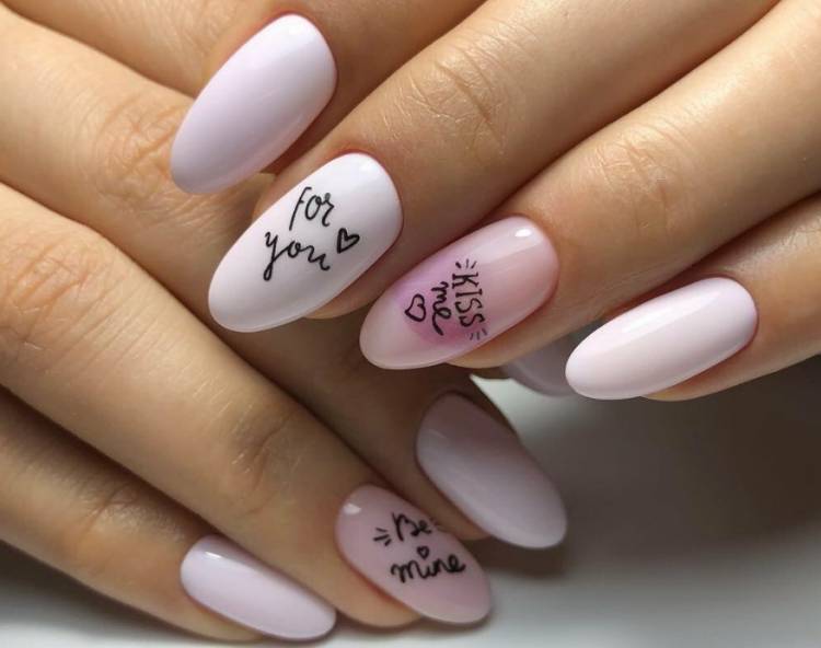 Цікаво виглядає дизайн “різні ручки”. У цьому випадку нігті на одній руці покривають рожевим лаком кольору, а на іншій – будь-яким іншим. Підсумок здається трохи дивним, але завжди вражає оточуючих. Найкращі варіанти для тандему: