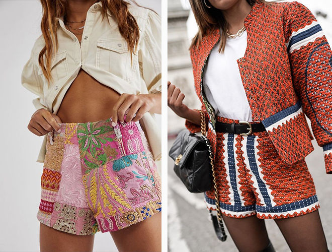 Речі, виконані в техніці печворк (тобто пошиті з клаптів різної тканини), виглядають оригінально. Яскраві шорти не залишать вас без уваги оточуючих і змусять гардероб заграти новими фарбами. Комбінувати печворк краще з простими, однотонними речами, щоб не перевантажити образ. Відтінки вибирайте з тих, що є на шортах: якщо на них є жовті відтінки, то блуза або топ того ж тону стане ідеальним доповненням.