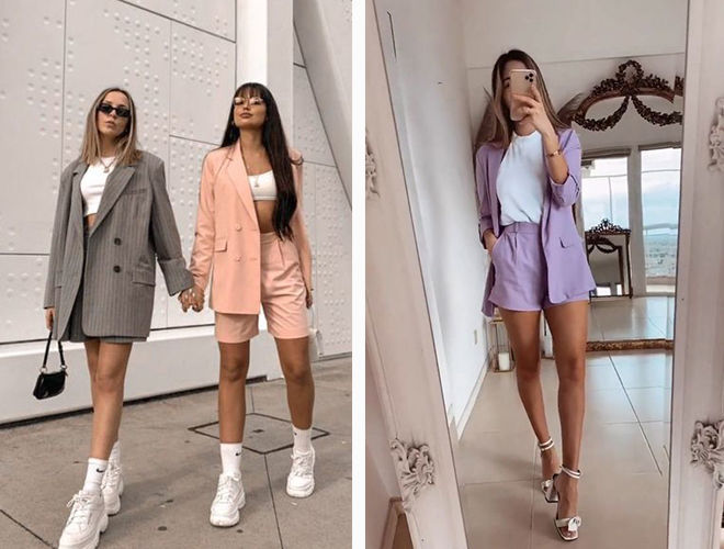 Вони універсальні, підходять для різних ситуацій, з ними можна скласти величезну кількість образів. Костюми носите повністю, надягаючи вниз футболки, майки або блузки з сорочками, або окремо. Так, шорти можна надіти зі світшотом, а піджак накинути поверх сукні.