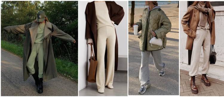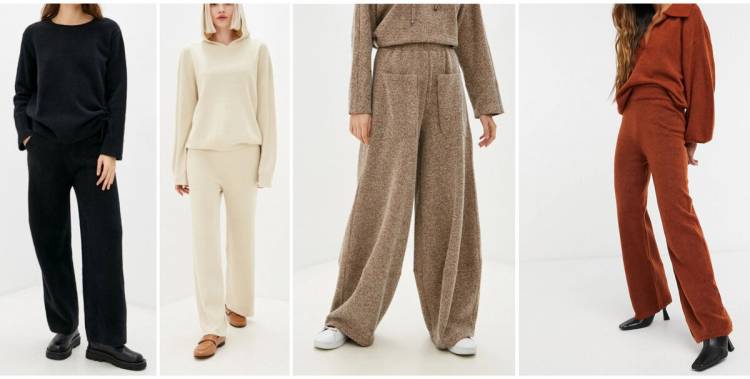 Трикотажні джоггери теж все ще актуальні, але вони максимально спортивні і не до кожного стилю підійдуть. А ось трикотажні брюки прямого крою або трохи розкльошені, широкі дуже зручні і більш елегантні.