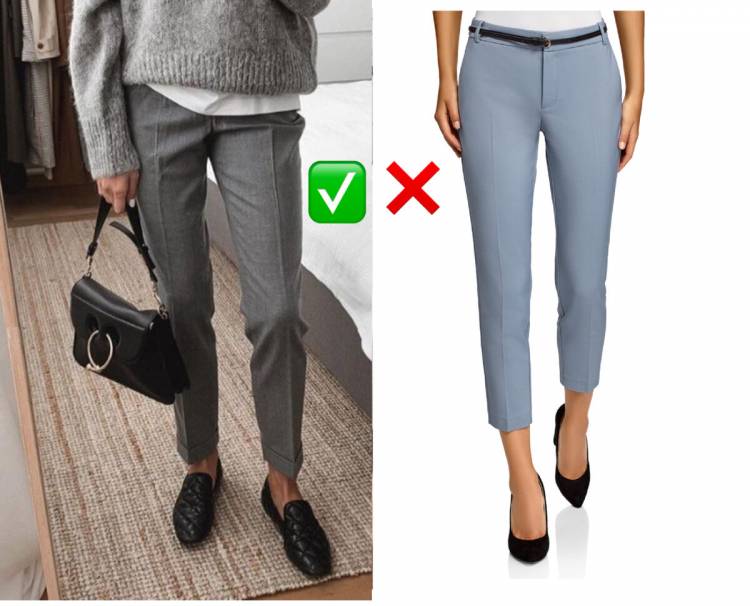 Також рекомендую не різати ноги різними кольорами і вибирати єдиний колір взуття та обтислих брюк. Якщо ваші ніжки прикрашають саме такі речі, то це ваша персональна база.