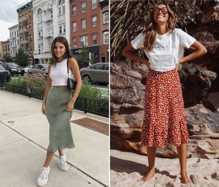 Класика літнього гардеробу – трапецієвидна міді спідниця, або А-силует. Вона має прилеглий крій в районі стегон і злегка розширюється до низу. Допоможе створювати самі жіночні і неймовірно елегантні образи. Принтовані спідниці виглядають більш розслаблено і по-літньому, однотонні хороші як для повсякденного носіння, так і для офісного гардероба. Не забуваємо про спідниці в білизняному стилі – вони все ще дуже актуальні.