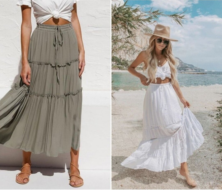 Ярусні спідниці актуальні вже не перше літо, і це справжнє уособлення спекотного сезону – легкі, повітряні, вони виглядають дуже ніжно і романтично, при цьому дуже комфортні, тому що дозволяють повітрю циркулювати і захищають від сонячних променів. Але такі спідниці не завжди доречні в місті найкраще вони виглядають в курортних, відпускних, морських аутфітах.