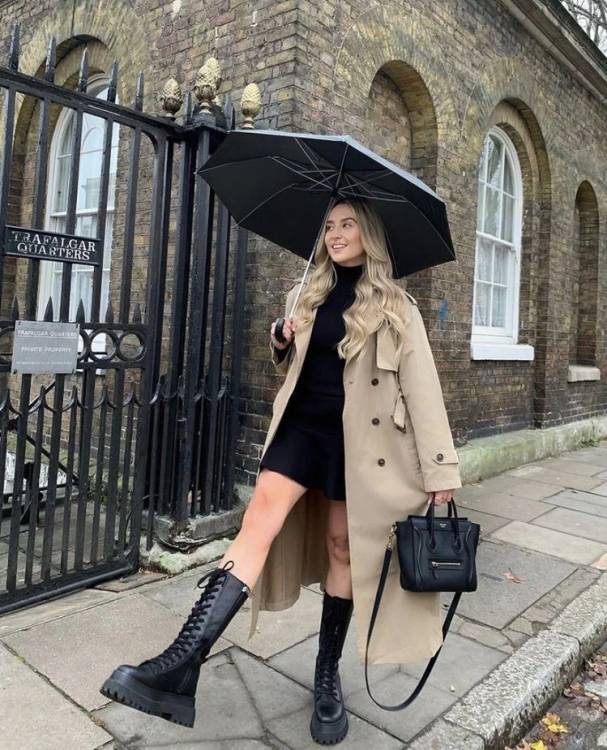 Трикотажна сукня чудово поєднується з грубими черевиками, козаками, пальто, тренчем або курткою-косухою.