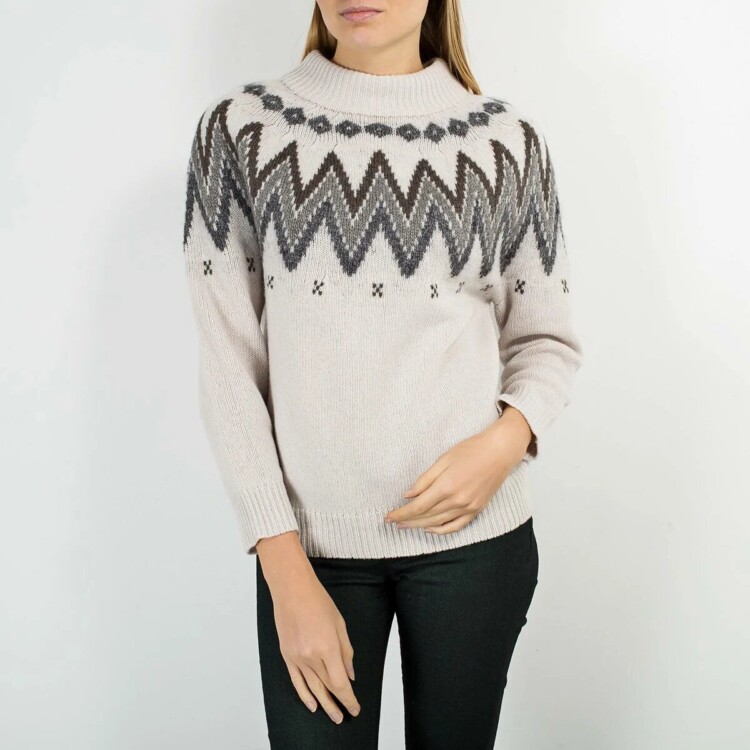 Доступні будуть светри зі складним візерунком. Вони самі по собі вже виділяються і надають образу неповторності і індивідуальності. Чим оригінальніше в’язка на светрі, тим краще. Тут може брати участь велика в’язка або ж застосування незвичайного варіанту виконання. Светр можна підібрати в нейтральних відтінках.