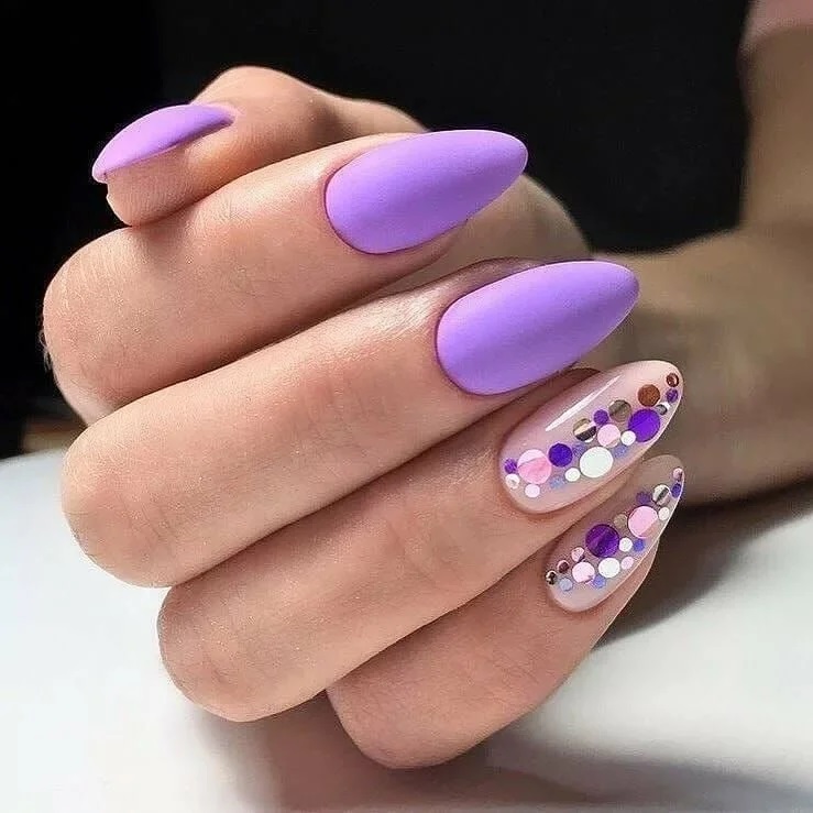 Можна використовувати конфетті. Такі прийоми дозволяють зробити манікюр просто карколомним. Якщо хочете бути наймоднішою цього літа, зверніть увагу на принт горох, який можна виконувати як в одному, так і декількох кольорах, граючи на контрасті.