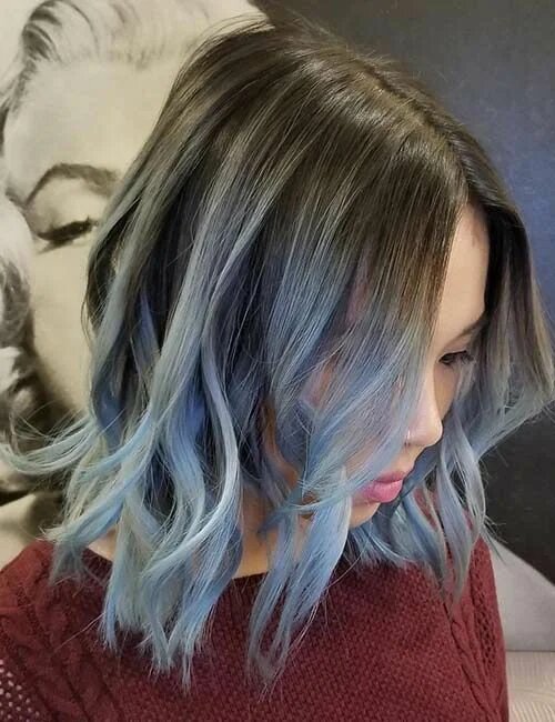 Складний пурпурно-синій з блакитним відливом – виглядає неймовірно красиво і сміливо. Найкраще таке тонування лежить на темному волоссі.