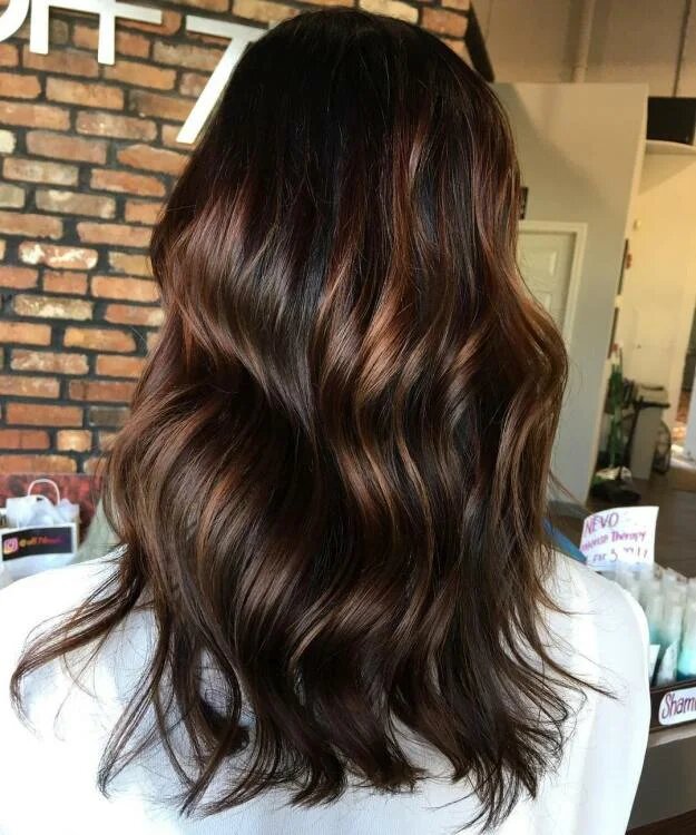 Шоколадний балаяж на темному волоссі. Прекрасне поєднання, особливо якщо балаяж виконаний максимально плавно і майже непомітно.