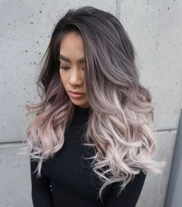 Попелястий з легким розовим відтінком виглядає незвично. Робить образ більш милим і дівочим, особливо якщо волосся пряме і довге в стилі baby doll.