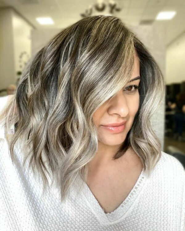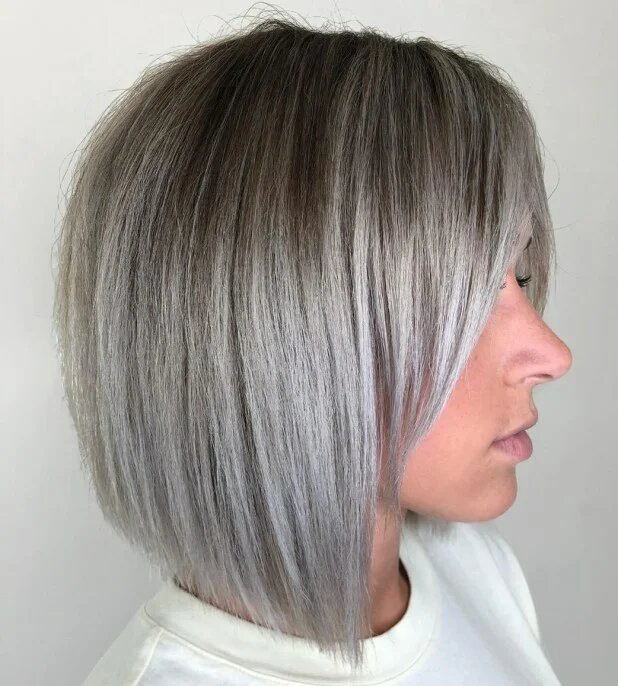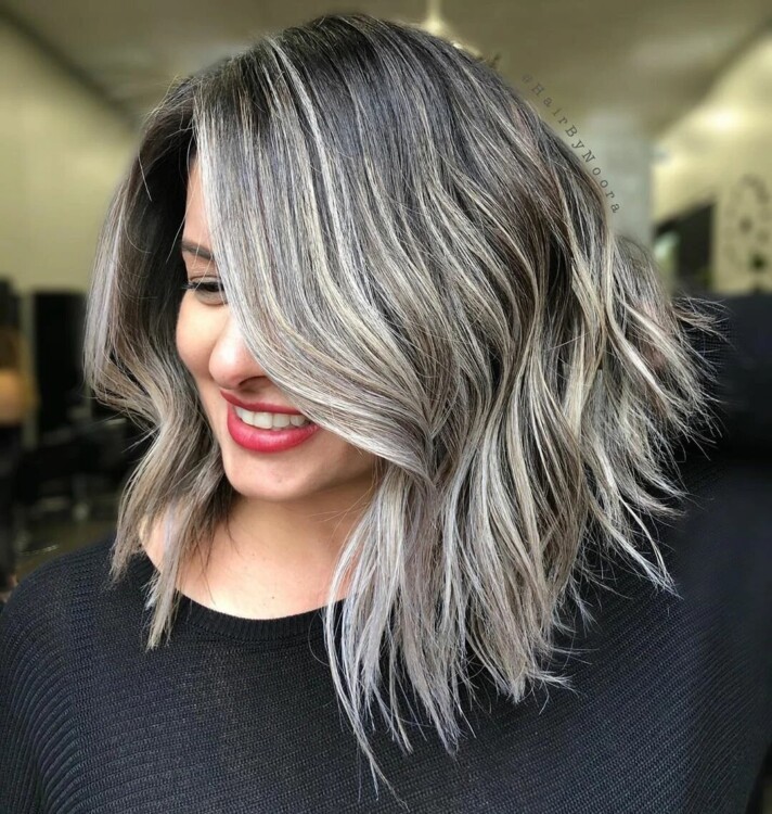 Попеляста платина – шикарний колір для власниць темного волосся. Зверніть увагу на коріння, воно повинне залишитися природним.