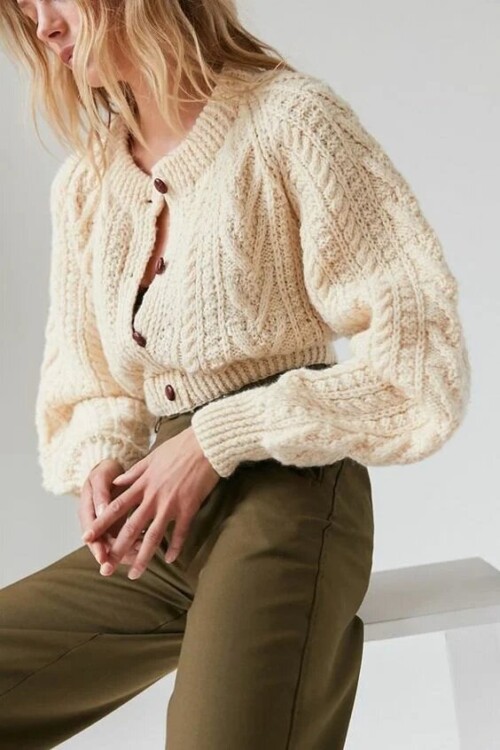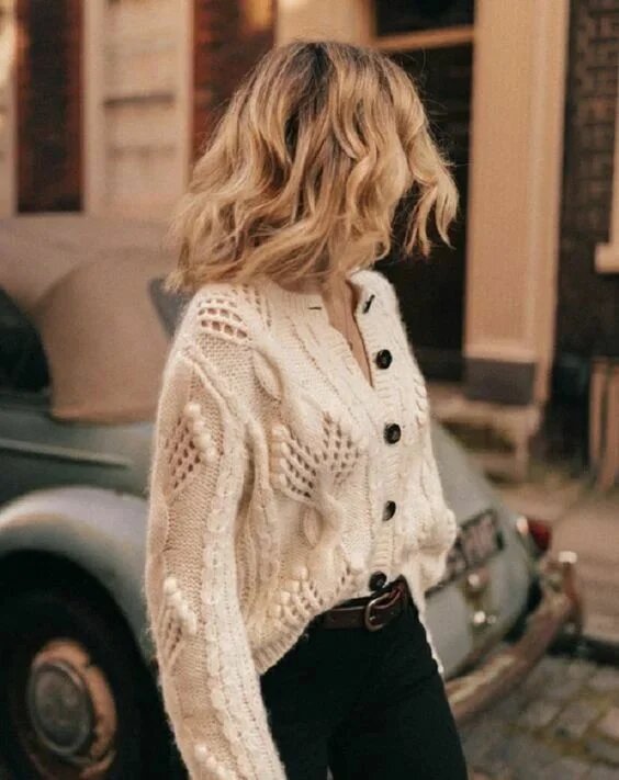 Стилісти звертають нашу увагу на ажурні кардигани з контрастними гудзиками. Базовий бежевий відтінок ажурне плетиво і легкий оверсайз розмір – це основні критерії стильного і витонченого кардигана, який обов’язково повинен бути присутнім в базовому гардеробі кожної пані. Стилісти рекомендують поєднувати актуальну в’язану річ з базовими білими сорочками, топами або мереживними майками в білизняному стилі.