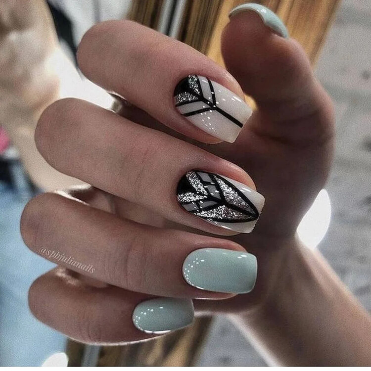 Білий манікюр, який прикрашений золотом, виглядає просто шикарно, погодьтеся? Найбільш часто в парі з білим лаком використовується золота скотч-стрічка або спеціальне лиття. Також нерідко можна зустріти і більш прості дизайни, а саме ті, де ніготь прикрашається золотим глітером або фольгою. У будь-якому випадку золото і білий колір – універсальне рішення, яке підкреслить статусність вашого образу і знання модних трендів!
