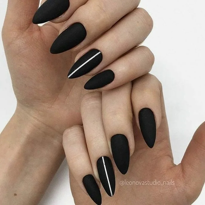 Матовий манікюр виглядає неймовірно благородно і стильно. Його можна використовувати на коротких і на довгих нігтях, незалежно від їх форми. Чудово він доповнює однотонний нейл-арт або доповнений стемпінг. Ми вам в березні 2021 радимо придивитися до мінімалістичної геометрії, яка гідно виглядатиме на чорному покритті.