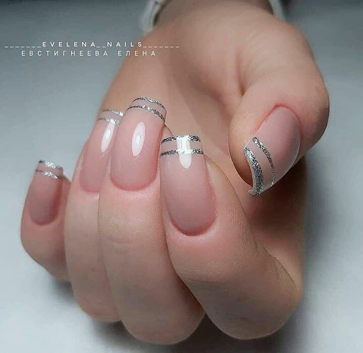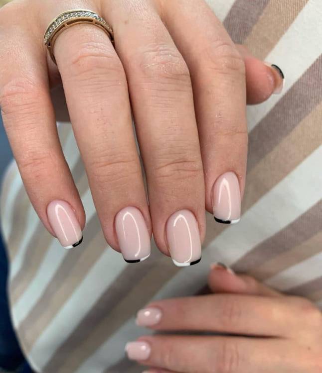 Дівчатам, які шукають стильний манікюр з елементами френча, рекомендуємо звернути увагу на варіант із подвійною облямівкою. Тут білий край нігтя підкреслюється двічі, що створює стильний малюнок, який виглядає витончено та незвично.