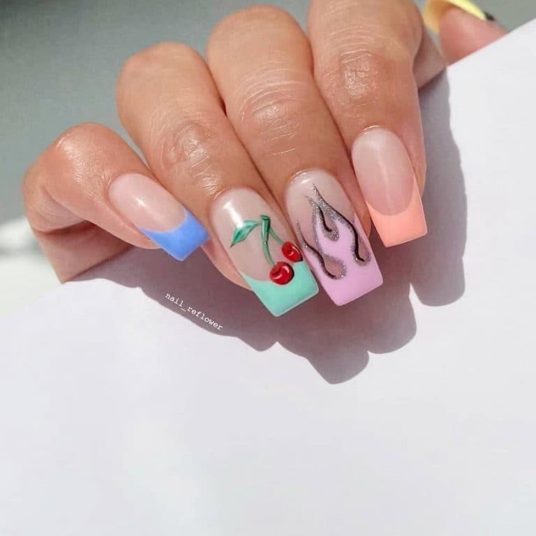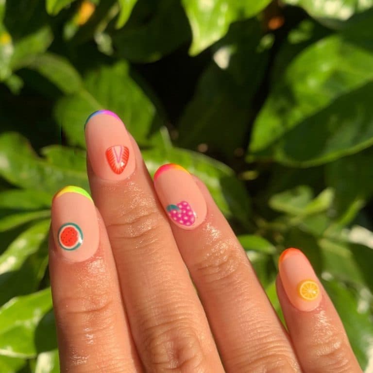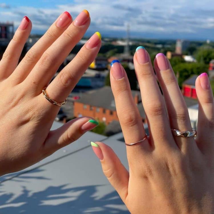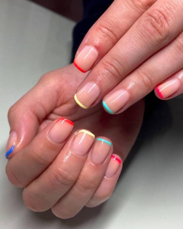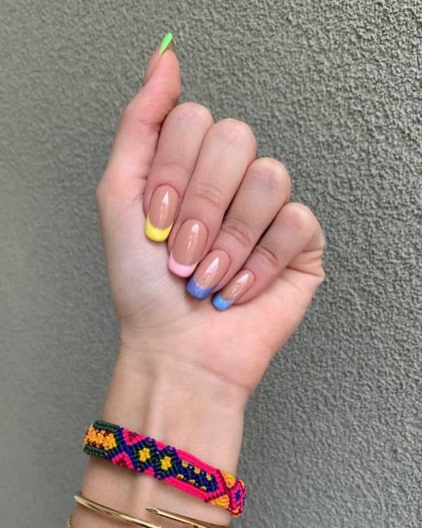 Варіант кольорового френча, при якому кожен ніготь забарвлюється в яскравий колір. Найкласніший нейл-дизайн для літа вже оцінили багато модниць у соц. мережах, оскільки він чудово поєднується з яскравими літніми коктейлями, купальниками та загальною атмосферою релаксу.