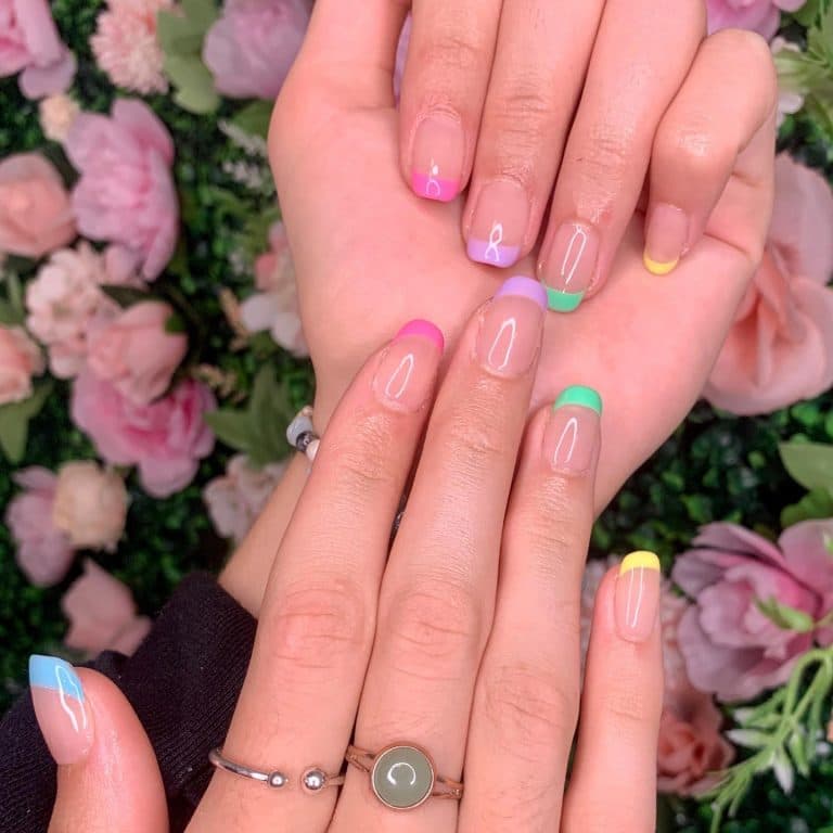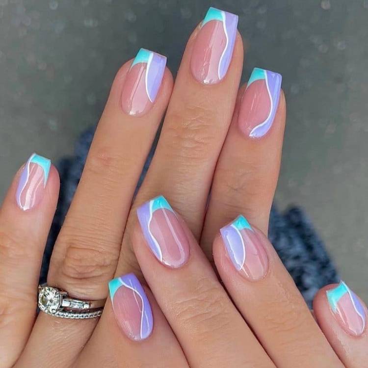 Серед найбільш універсальних ідей френча на нігтях 2022 року слід відзначити манікюр у пастельних тонах. Тут нігтьова пластина забарвлюється в природні нюдові тони, а сам ніготь – у фіолетовий, ніжно-рожевий, кремовий, м’ятний, персиковий та інші пастельні. Незвичайний варіант пастельного френча – ніготь та пластина забарвлюються у пастельні відтінки схожих кольорів.