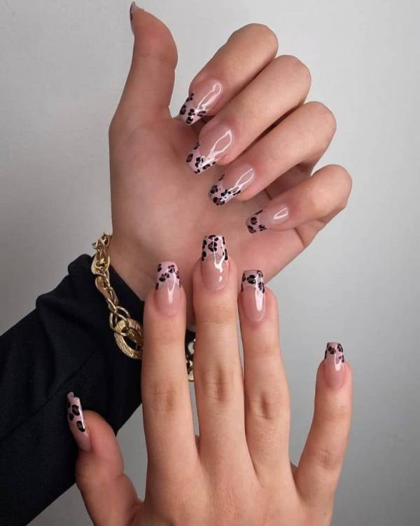 Супергарячий тренд – френч з малюнком, що імітує тваринний принт. Зебра, жирафа, леопард – вибирайте самостійно. Всі ці види френча на нігтях виглядають надзвичайно!