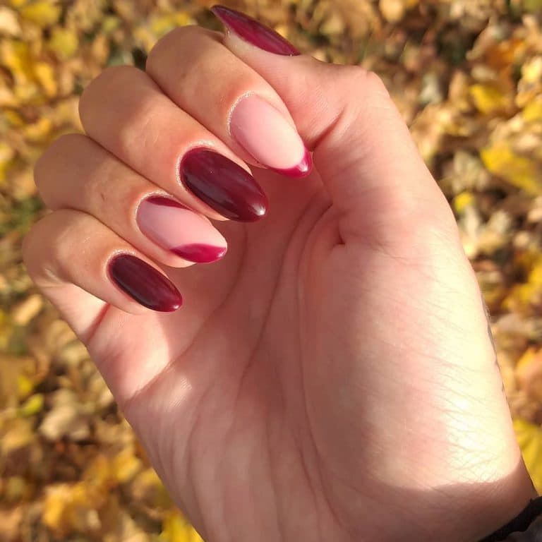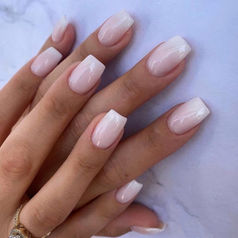 Французький манікюр омбре передбачає градієнтне фарбування одним або кількома відтінками лаку. Такий принт виглядає трохи розмитим, його найкраще поєднувати з нарощуванням нігтів. Якщо цікавить стильний френч на гострі нігті 2022, омбре в модному відтінку точно підійде.