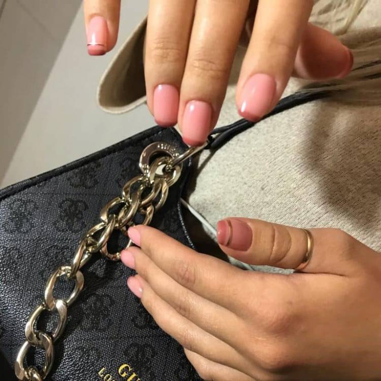 Один із найкращих варіантів френчу на середні нігті – монохромний або однотонний. Для нього вибирають два відтінки одного кольору. Найкраще виглядають кавові, коричневі, пастельні та нюдові тони. Зверніть увагу, як стильно виглядає монохромний френч на нігтях у реальному житті.