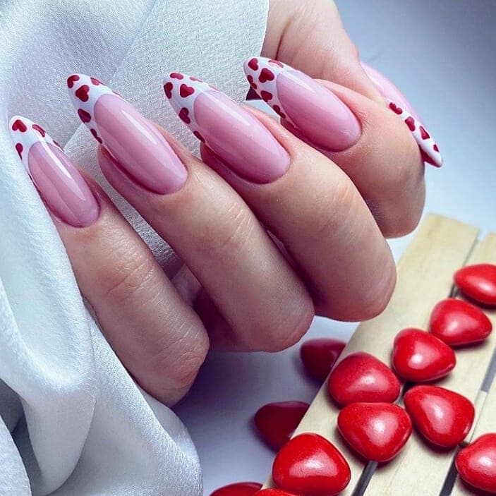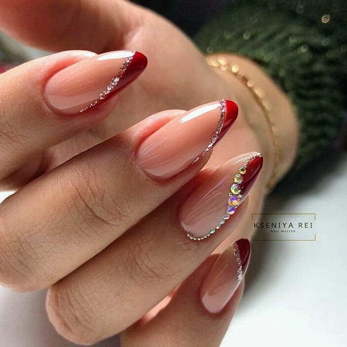 Ультрамодний манікюр френч 2022 року є майже класичним дизайном. Ось тільки виступаючий край нігтя забарвлений не в білий, а червоний колір. Такий варіант виглядає дуже природно і при цьому яскраво і неординарно, адже поєднує в собі одразу два класичні прийоми – френч та червоний лак.