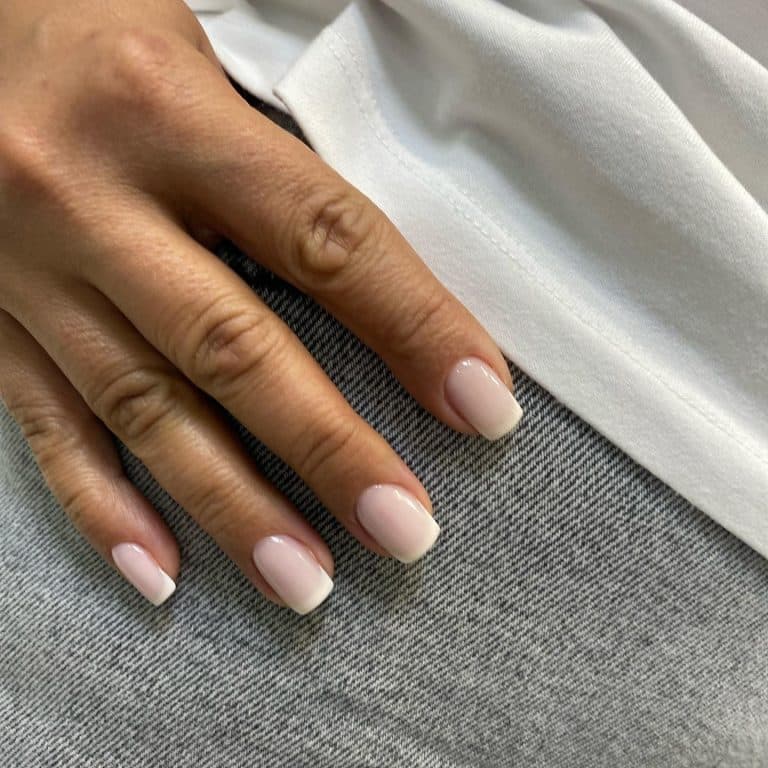 При прихованому френчі характерний перехід майже непомітний, що робить манікюр вишуканим та стриманим. Такий сучасний френч на нігтях виглядає дуже актуально і універсально підійде для роботи та урочистих випадків.