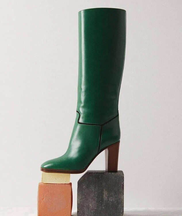Темно-смарагдовий відтінок напівчобітків або високих черевиків, декорованих ланцюжками, шнурівками і металевими логотипами добре впишеться як в офісний, так і в повсякденний образ. Не слід купувати взуття такого кольору блідих тонів, він не є модним відтінком.
