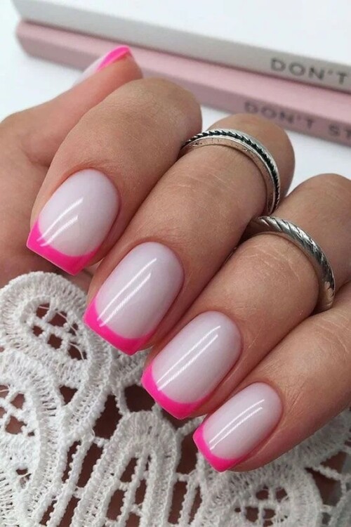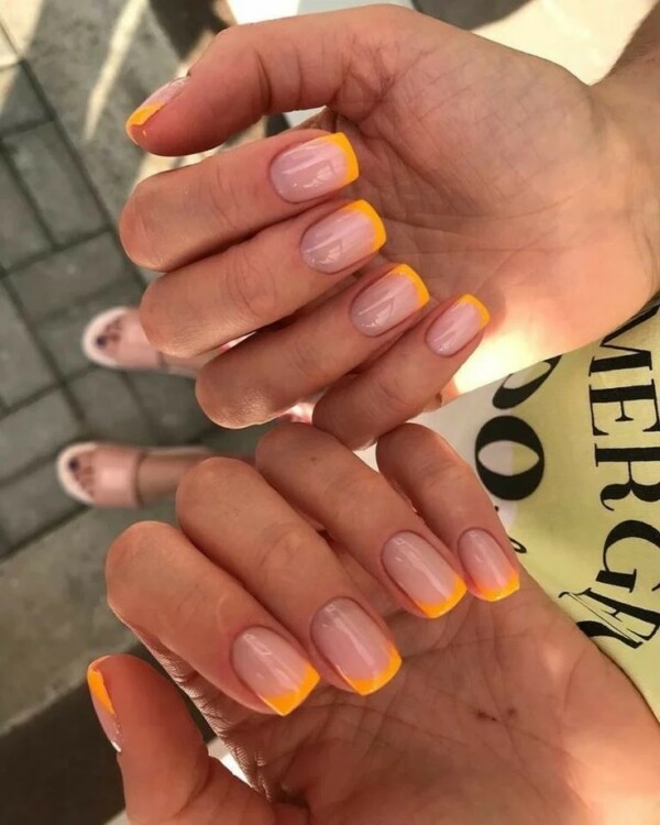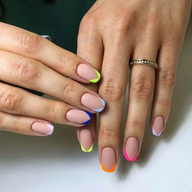 Французький манікюр один з моїх улюблених. Але цього літа я експериментую з кольором – проводжу тонкі лінії різних відтінків, роблю різні контрастні смужки, промальовує лінію кутикули. Спробуйте цей незвичайний дизайн на всіх нігтях, або тільки на декількох.