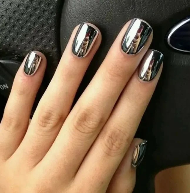 Металевий дизайн, на мою думку, виглядає надзвичайно саме на коротких нігтях. Блискучий лак додає нігтям загадковий і такий звабливий блиск.