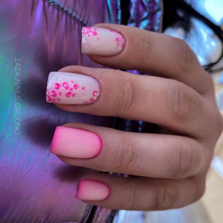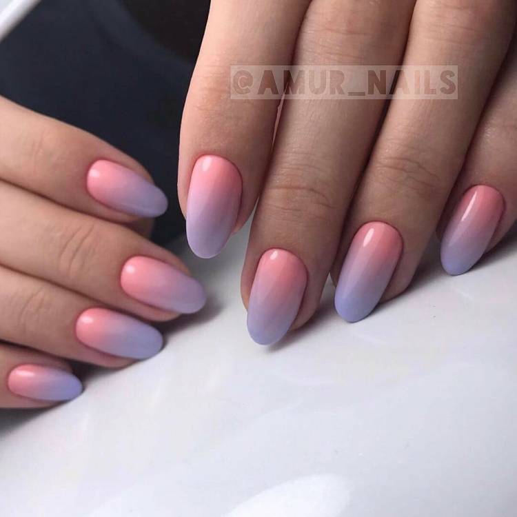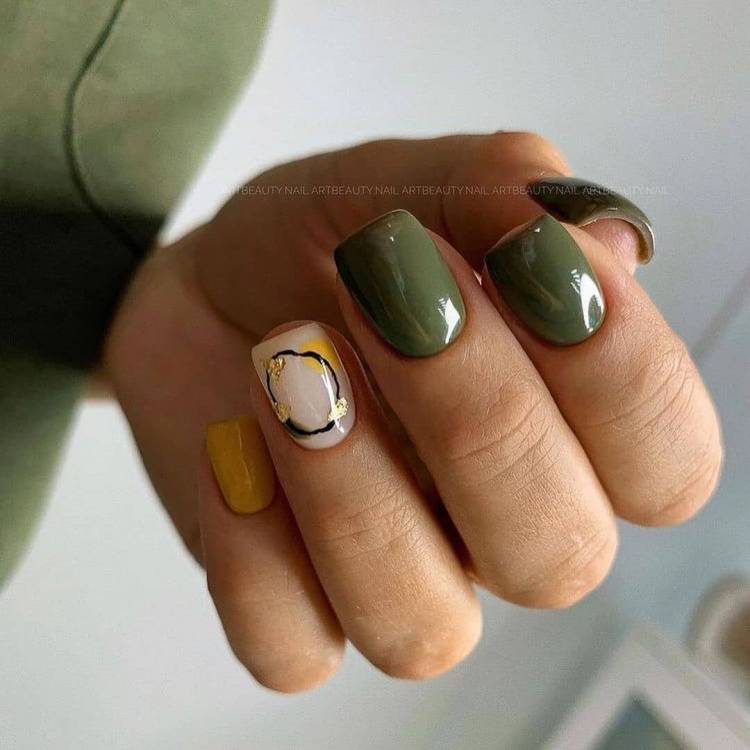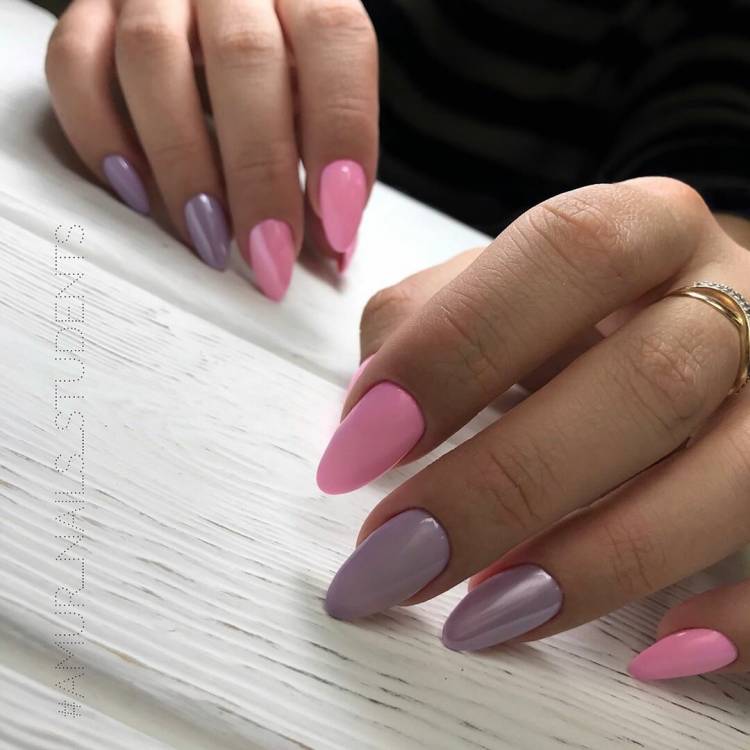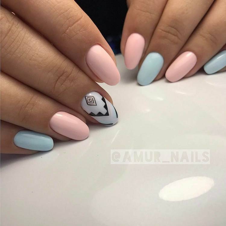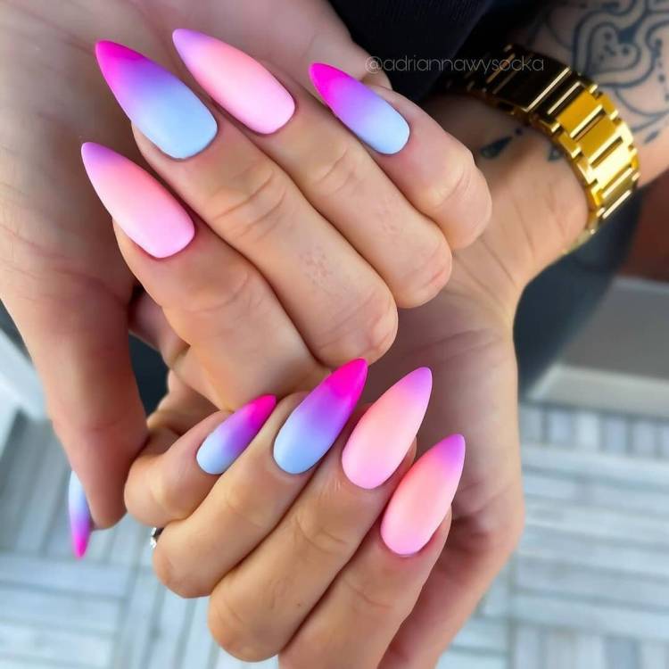 - різнокольорові нігті у близькій кольоровій гамі;