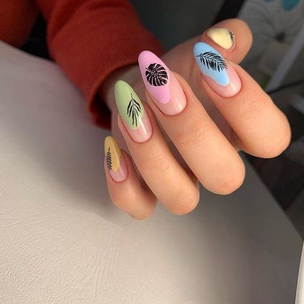 Весняні нігті гострої та мигдалеподібної форми у новомодному дизайні