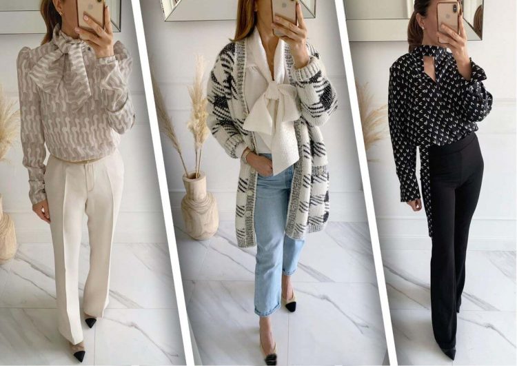 Незмінно затребувані також блузи з бантом – з такими моделями можна створити безліч стильних і цікавих офісних образів. Наприклад, з твідовими кюлотами, до яких можна підібрати інше взуття – чоботи чи ботильйони. Єдиний тренд, який не підійде до цього образу – грубі черевики.