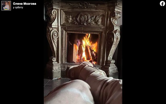 На світлині зірка показала вогнище, що палахкотить у гарно оздобленому каміні. У кадрі також Олена Мозгова показала свої ноги в уггах. Ймовірно, знаменитість була вдіта по-домашньому, адже на світлині теж видно її спортивні штани.